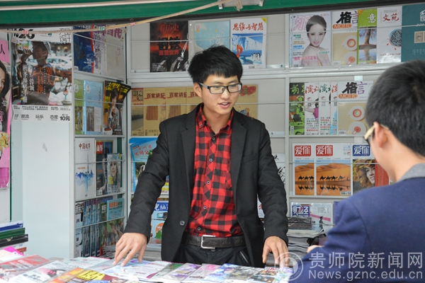 谢贵鹏在报刊亭工作