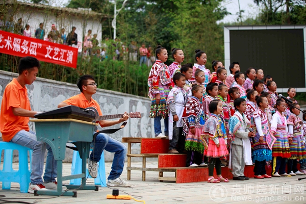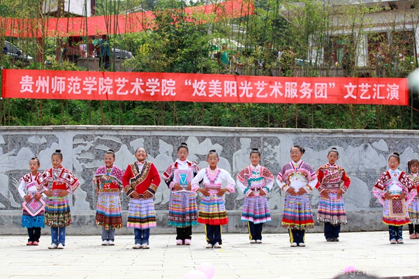 志愿者为海雀小学学生排的舞蹈《苗舞》