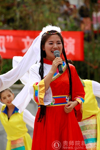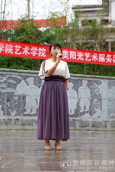 节目最后,所有的志愿者着志愿服,上台一齐同唱《一定要对老百姓好》,这首歌是由贵州师范学院艺术学院党委副书记兼副院长、青年歌唱家马关辉老师作曲原唱的。它不仅是“文朝荣精神”的赞歌,还是贵州师范学院艺术学院的骄傲。我们的演出在曲终后圆满结束。