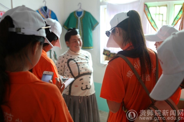 7月9日星期三下午两点多,贵州电视台记者造访海雀村,恰逢“炫美阳光”艺术服务团画展正式展出。两位记者参观了画展之后,便和志愿者同学们聊天,对我们此次下乡到海雀村的情况做了初步了解。