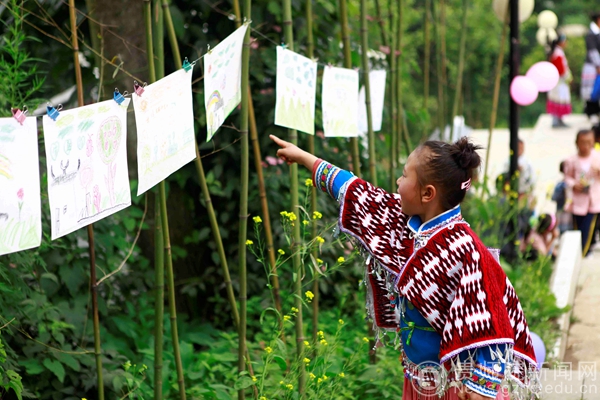 画展布置完毕后,引来了许多参观的人,在等待演出的过程中,乡亲们就是通过参观画展来打发时间的。许多孩子的父母在看到他们孩子的作品后,都会露出会心的笑容。
