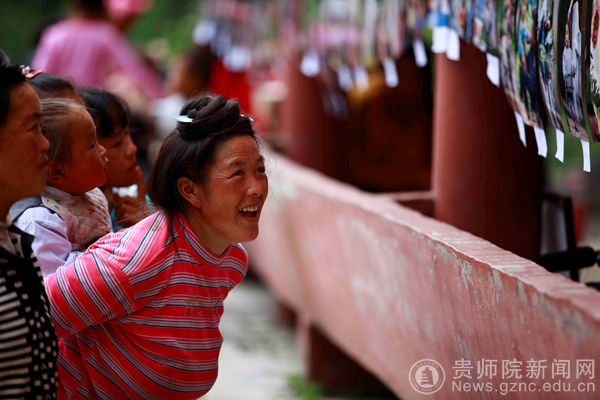 当摄影展刚刚布置好,就恰逢贵州大学的老师组织来海雀村学习“文朝荣精神”,他们一下车,就直奔摄影展现场,对我们此次的摄影展作品给予了高度赞扬!