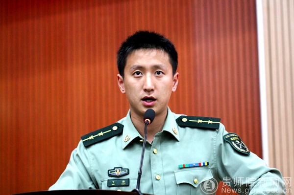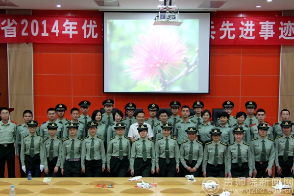 为进一步激励大学生的参军热情, 6月5日晚7点,贵州省2014年优秀大学生官兵先进事迹报告会在我校学术讲堂举行。校武装部部长薛璞主持报告会,校武装部副部长刘讯、乌当区武装部副部长田小方出席了本次报告会。