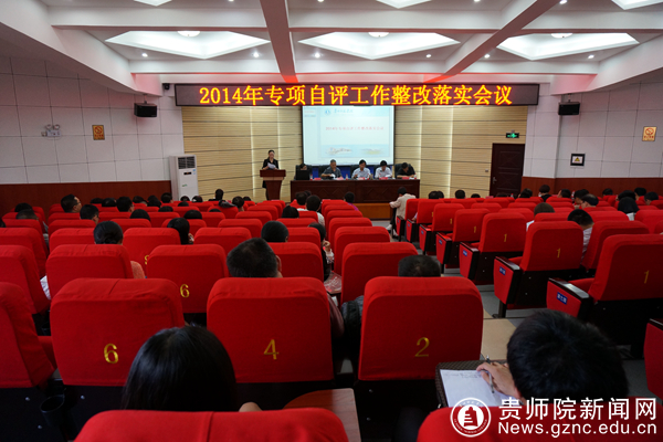 2014年5月23日(星期五)下午,我校在继续教育学院报告厅召开2014年专项自评工作整改落实会议。副校长张承鹄教授、校长助理夏卫东博士,教务处、实验教学管理中心、马列部负责人,各学院院长、分管教学副院长及教研室主任,教学督导组组长,质评办全体人员参加了会议。会议由副校长张承鹄主持。
