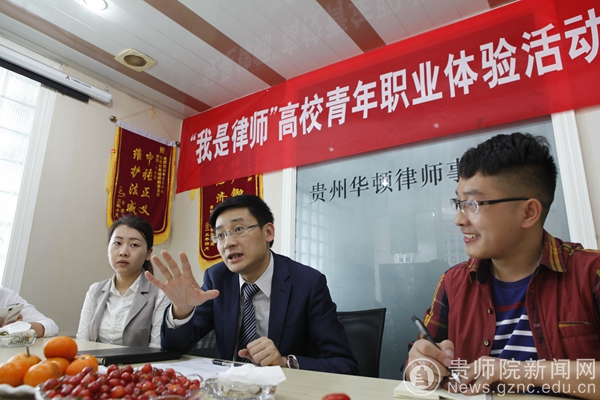 为了让我们能真实的触摸职场,数天来,经过民盟省委青年工作委员会、省司法厅青年工作委员会、省司法厅新闻宣传中心、贵州省陶行知教育思想研究会、贵州师范学院、贵州师范学院民盟支部、贵州华顿律师事务所等等多方关注与支持,合力为我们打造了“生活即教育,社会即学校,教学做合一”大学生职前教育之“我是律师”体验活动,零距离触摸职场。