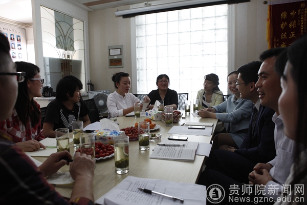 今天是我们工作的第一天,活动的联办单位代表:省司法厅青年工作委员会副主任吴刚,民盟贵州省委青年工作委员会副组长、贵州省陶行知教育思想研究会秘书长、贵州师范学院教学质量监测与评估研究中心主任邓琴,贵州师范学院宣传部部长邹晓青,省司法厅新闻宣传中心余洁,经济与政治学院团委书记刘陈娇齐聚贵州华顿律师事务所,为我们举行了活动启动仪式,贵阳市人民政府法律顾问、贵阳市人大地方立法专家、贵阳仲裁委员会仲裁员、贵州省同心.律师服务团副团长、贵州华顿律师事务所的主任律师宋讯主持会议。会议很隆重,感觉很像家长们送我们第一天上学,有着太多的期盼与寄语,很温暖。