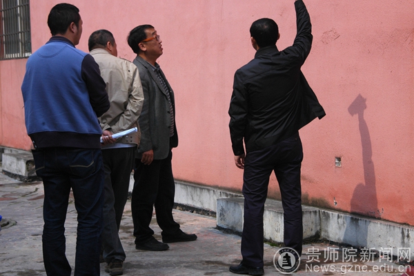 检查组一行对学校各教学楼及学生公寓的避雷设施和学校各偏坡进行了认真细致的检查。检查过程中发现,部分学生公寓防雷铁有裸露现象,存在安全隐患,睿园和梅园后面的山坡出现山体滑坡现象。如遇到强降雨恐有事故发生。