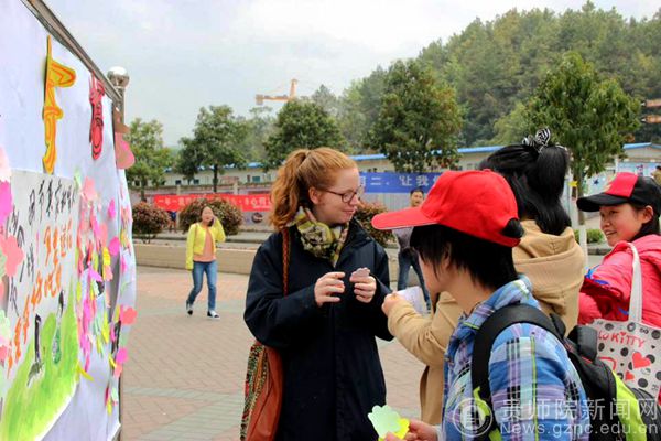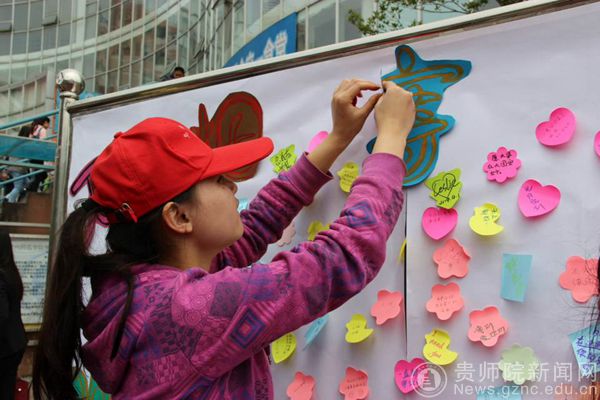 早上8点半,志愿者们将准备好的两块展板摆放好,一块用来表达对已逝亲人的爱,上面的标题为“清明节祭祖寄哀思”,而另一块展板上写着“献花寄语墙”。同学们可以自由的选择贴纸的形状,在贴纸上写上自己想说的话,很多同学都在“清明祭祖寄哀思”的墙上写上了自己对逝去亲人的怀恋,在“献花寄语墙”上为周恩来,钱学森,雷锋,邵逸夫等献上写有怀恋的花型贴纸。很多学生都表达了他们的爱。本次活动中,来自泰国的交换生、学院外教也积极的加入了我们的活动,为活动增添了绚丽的色彩。