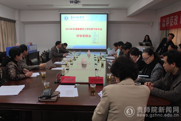 3月26日下午,我校2014年新增学士学位授予权专业评审答辩工作会议在文韬苑教务处会议室召开。专家评审组由贵阳学院副院长焦艳教授,贵阳广播电视台播音部副主任钟华主、贵州大学教务处副处长胡宗超、贵州财经大学教务处副处长周新刚、贵州师范大学历史系原副主任张羽琼教授、贵州师范学院教学质量监测与评估办主任邓琴组成,焦艳教授任组长。校长李存雄、副校长令狐荣锋、校长助理夏卫东及学校学位评定委员会委员出席会议,会议由教务处处长熊世桓主持。