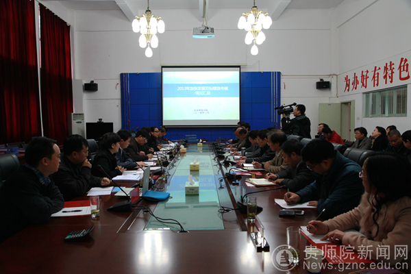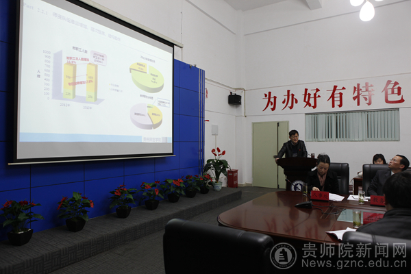 3月13日,以省直目标办原专职副主任廖翼翔为组长,贵阳学院副院长焦艳为副组长的省加快发展目标考核组一行9人,到我校对2013年加快发展目标完成情况进行了考核。我校全体校领导及相关部门负责人参加了汇报会和反馈会,副校长汪弈主持会议。