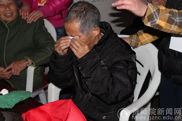 上午10:00,我院16名学生在老师的带领下,到达了位于贵阳市乌当区新添寨的长寿敬老院,受到了敬老院全体员工及老人们的热烈欢迎。同学们将带来的水果、面包等慰问品分发给老人门后,进行了有序分工,以小组的形式到各个房间陪老人们聊天,帮他们打扫卫生、按摩,为其排忧解难。另外,同学们还为老人们表演了舞蹈、歌唱等节目,一位老人还即兴演唱了一首革命歌曲,整场活动充满了欢声笑语。时光飞逝,分别在即,同学们还与老人们合影留恋,有的老人忍不住流出了感动的泪水。