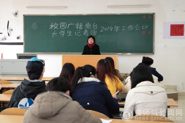 2014年3月6日,贵州师范学院大学生记者团、校园广播站2014年新学期工作会议在明辨楼301教室举行。会议主要围绕社团本学期工作计划,今后的工作重点和方向来进行。