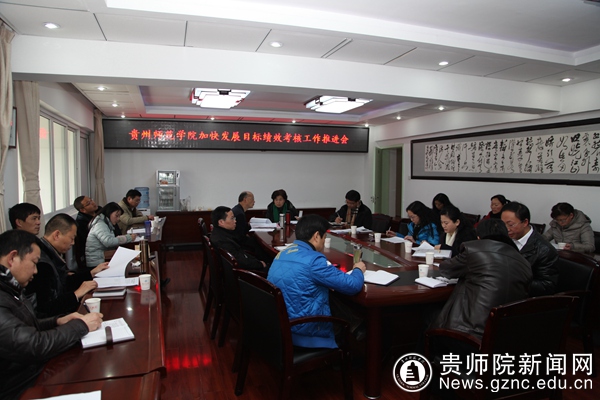2014年1月9日,我校2013年加快发展年度目标绩效考核工作推进会在第二会议室召开。校党委书记韩卉、副校长汪羿出席会议,各相关部门负责人参加了会议,会议由党委组织部部长唐本文主持。