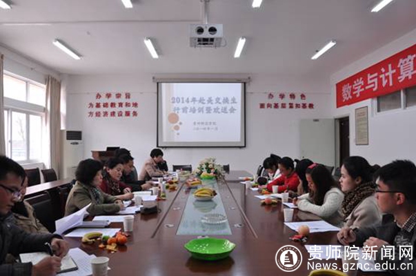 我校3名赴美国西南俄克拉荷马州立大学交换学习的学生将于2014年1月6日启程前往美国,为确保赴美交换生在美国学习期间生活学习顺利, 1月2日下午,对外交流合作处在数计学院会议室组织召开了“2014年赴美交换生行前培训暨欢送会”。副校长令狐荣锋、校长助理夏卫东,对外交流合作处、学工部、校团委、保卫处、数计学院相关负责人,以及2014年赴美国3名交换生参加了会议。会议由对外交流合作处处长王又新主持。