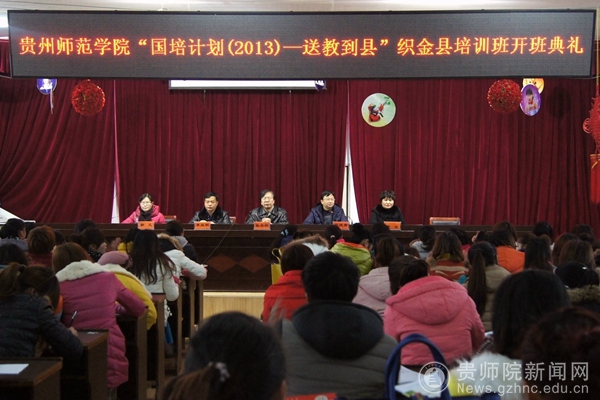 2013年12月21日,贵州师范学院“国培计划(2013)—送教到县”织金县培训班开班典礼在织金三小会议室隆重举行。我校副校长张承鹄、教科院院长郭文、织金县教育局副局长李成明、师资教育股股长李云、授课专家及全体参训学员出席了开班典礼。开班典礼由继续教育学院院长赵德肃主持。