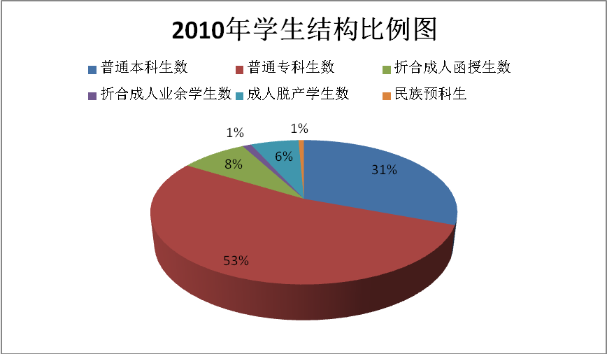 图14 贵州师范学院年度2010年学生结构比例图(单位:%)