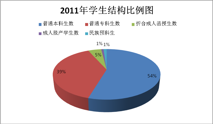 图15 贵州师范学院年度2011年学生结构比例图(单位:%)
