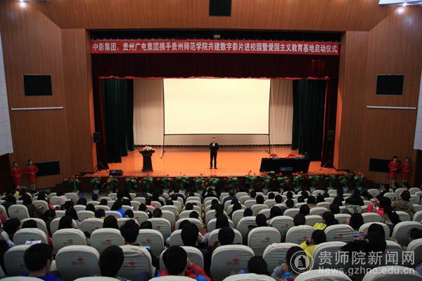 12月3日下午3点半,“贵州师范学院电影文化进校园暨爱国主义教育基地启动仪式”,在我校逸夫楼演播厅举行。我校党委书记韩卉、贵州广电传媒集团总经理晏世忠、中国电影集团公司副总经理秦虎、贵州省广电局副局长胡德怀出席了本次启动仪式。