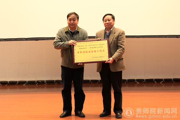 仪式上,贵州广电传媒集团、贵州容大影视文化传播公司与我校签订了相关协议。随后,省广电总局、中影集团发行公司、数字院线公司联合向我校授牌,并标志着我校成为全省首家电影文化进校园活动试点单位、全省首个通过电影文化推进爱国主义教育的基地。