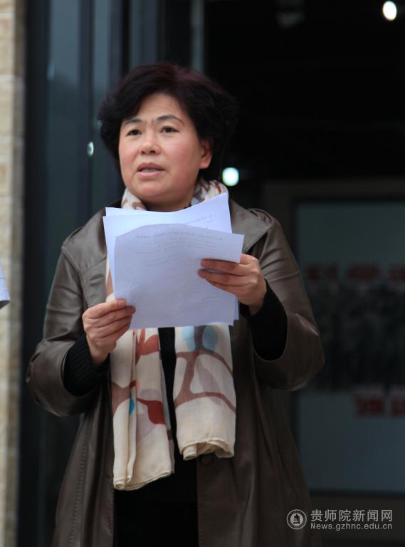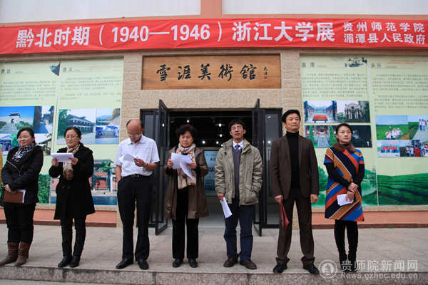 仪式上,历社学院申满秀院长,首先对参观方式和展出时间作了说明,并提出观展要求,她欢迎我校师生在展出期间前来参观。校党委书记韩卉作重要讲话。韩书记对我校自2009年搬迁乌当新校区不久即启动的浙大西迁项目工作及展览的制办作了简短的回顾,介绍了浙江大学在黔北时期的历史文化和取得的辉煌成就。韩书记指出,通过这次展览的举办,对发掘和传承黔北浙大历史文化遗产资源,弘扬浙大求是创新精神,推动我校与湄潭县浙大西迁史项目的合作,将起到积极的作用。韩书记最后宣布开展。开展仪式结束后,参加仪式的领导和历社学院的学生一道参观了展览。