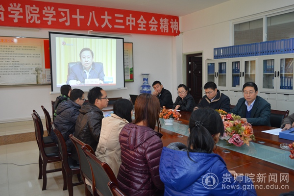 11月29日下午,按照省委办公厅、校宣传部通知要求,我院教职工在第七会议上观看了由中央宣讲团成员、中央宣传部副部长王晓晖作的十八届三中全会精神宣讲报告。