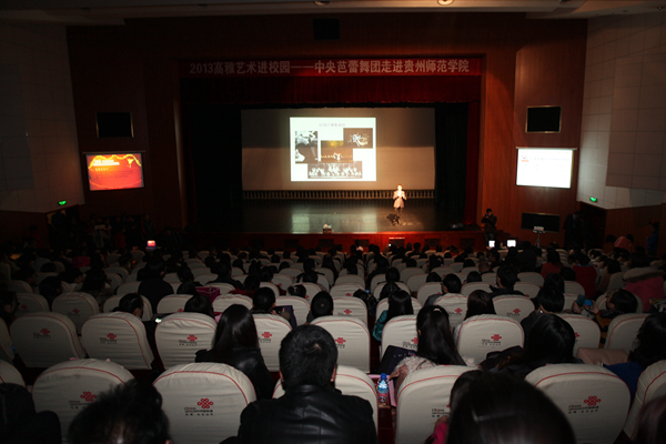 2013年11月14日,中央芭蕾舞团走进贵州师范学院,在逸夫楼演播大厅,为全校师生带来了一场高雅艺术的视觉盛宴。出席此次表演的领导有省教育厅副厅长李奇勇,我校及省内部分高校校领导等。