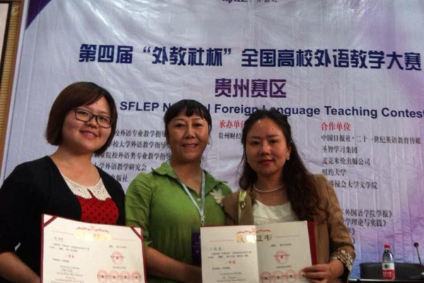 近日,由教育部高等学校外语专业教学指导委员会、教育部高等学校大学外语教学指导委员会、上海外语教育出版社、香港浸会大学共同主办的第四届“外教社杯”全国高校外语教学大赛贵州赛区决赛在贵阳拉开帷幕,我校大外部户晓娟、张湖婷两位老师参加了比赛,经过大赛现场课堂教学展示及专家评委现场问答等环节,两位老师脱颖而出,展现了优秀的外语教学素质和对现代教育技术的运用,在比赛中荣获优异成绩,户晓娟老师荣获“视听说”组一等奖,张湖婷老师荣获“综合组”二等奖。