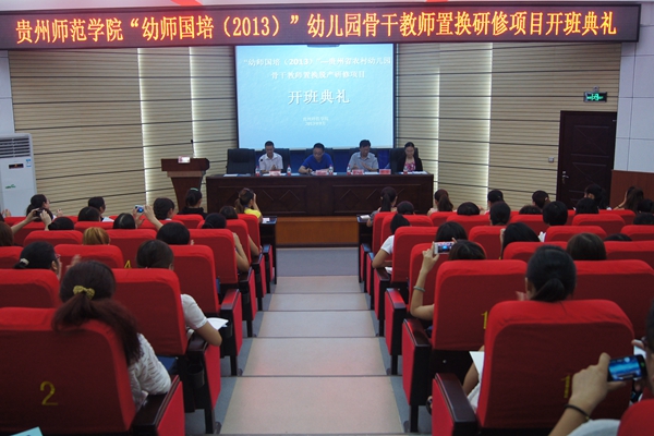 2013年9月18日上午,贵州师范学院“幼师国培(2013)”幼儿园骨干教师置换脱产研修项目开班典礼在继续教育学院报告厅举行。省教育厅教师工作处副处长周玉林、继续教育学院院长赵德肃教授、教育科学学院院长郭文教授等相关领导、班主任以及来自毕节市、黔西南州、六盘水市的150名幼儿园骨干教师参加了开班典礼。开班典礼由继续教育学院副院长宋万琚博士主持。