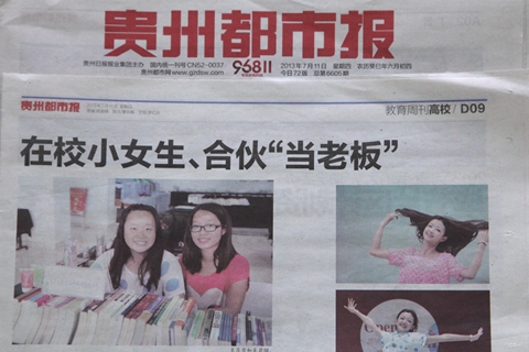2013年7月11日《贵州都市报》D09版以《在校小女生、合伙“当老板”》为题,报道了我校国家级大学生创新创业计划训练项目。
