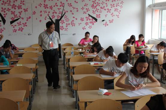 2013年7月1日上午,令狐荣锋副校长在教务处副处长刘宪帮、经济与政治学院院长程艳萍的陪同下对我校知行苑各考场进行期末考试的巡考工作。