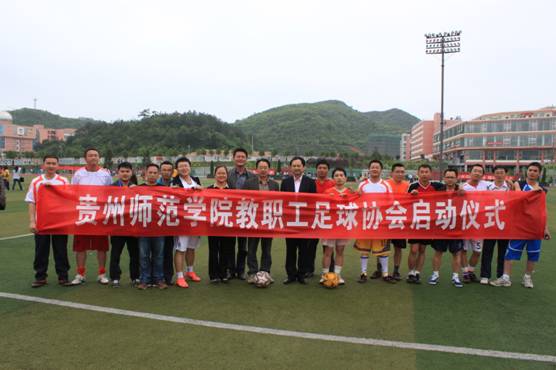 5月4日下午,“贵州师范学院教职工足球协会”成立仪式在学校运动场隆重举行,贵州师范学院石培新副院长、校长助理卢鹏、校工会常务副主席许丽君出席,由各学院、部门教职工组成的足球协会共20多人参加。