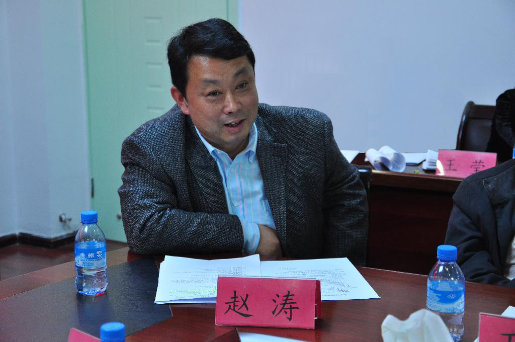 国际交流与合作处处长赵涛向考察组介绍了我校英文网站的建设情况