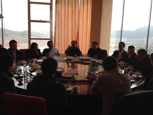 党委副书记万一平、副校长令狐荣锋与扶贫队员亲切座谈、共进午餐