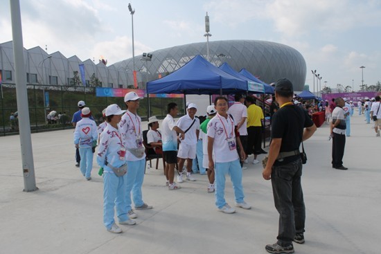 我校副校长石培新、学工部部长王军辉、团委书记邹晓青到奥体中心看望祝贺我校九运会学生演员和志愿者工作圆满结束