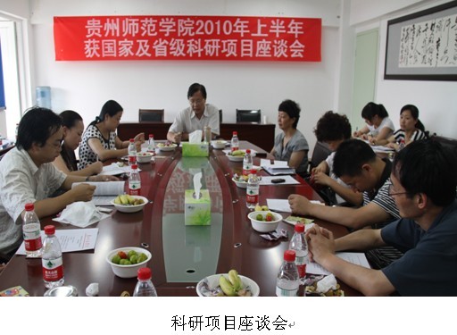 7月7日下午4:30分 ,我校召开了2010年上半年国家及省级科研项目座谈会。2010年获国家社会科学基金项目负责人和获省自然科学基金项目负责人、各相关学院院长、科研处全体人员参加了会议。会议由张承鹄副院长主持。 科研处首先宣布我校2010年获国家社会科学基金项目立项情况,布置填写国家社会科学基金项目立项《回执》,签定《贵州省师范学院科研项目(经费使用)责任书,举行开题报告等事项;其次,科研处宣布我校2010年获省自然科学基金项目立项情况,布置签定《贵州省师范学院科研项目(经费使用)责任书》。 座谈会围绕项目立项后如何开展研究工作,取得预期研究成果进行了座谈。与会者畅所欲言,提出了很多很好的意见和建议。 张承鹄副院长对会议进行了总结。张承鹄首先代表学校对各课题主持人和所属学院与学校科研处的努力工作和所取得的成绩表示衷心感谢,通报了我校近5年来科研课题立项情况,对我校改建为贵州师范学院后特别是今年所取得的成绩表示了充分的肯定,对大家所提出的意见和建议表示感谢。张承鹄要求科研处对大家提出的意见和建议进行整理,能解决的要马上解决,暂时不能解决的要提出解决方案;并要求科研处要做到规范管理与热情服务相结合,努力成为科研工作者的“科研之家”。同时,张承鹄还要求各相关学院要关心支持本学院课题主持人及其成员的工作,处理好教学与科研工作的关系,保证课题主持人及其成员有时间进行科研工作;要求课题主持人及其成员要做到学术上求真求是、工作中严谨务实、经费使用上规范合法,按时保质保量完成所承担的课题任务,坚决杜绝学术腐败。