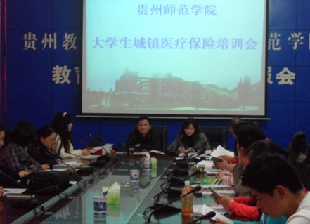 2010年4月9日,学生资助管理中心和后勤处在学校一号会议室组织召开了“贵州师范学院大学生城镇医疗保险培训会”。贵阳市乌当区医保中心主任陈世敏、医保审核部主任芦洪兰等受邀到校开展培训。学生工作部王军辉部长、各学院辅导员参加了本次会议。