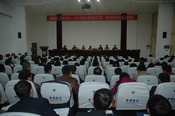 “‘国培计划——中小学骨干教师培训项目’贵州师范学院班”,采取送教下地州形式,于2009年12月18日至28日在黔东南州凯里市举办。 12月19日上午在凯里学院举行了开班典礼,省教育厅副厅级督学罗志林督学、贵州师范学院副院长张承鹄教授、黔东南州教育局副局长王兴国局长、凯里学院曾羽院长、姚仁海副院长、凯里学院成教学院总支书记曹庆五同志参加了开班典礼。罗志林督学代表省教育厅对贵州师范学院高度重视“国培计划——中小学骨干教师培训项目”工作表示感谢,对黔东南州教育局及凯里学院为本次培训提供的后勤支持服务表示感谢;对本次国培项目工作提出了具体要求。张承鹄副院长代表贵州师范学院作了讲话。张承鹄对教育部、省教育厅对我校工作的关心支持和信任表示感谢,并指出开展中小学骨干教师培训是促进义务教育均衡发展、促进教育公平、最终促进社会公平的有效途径,是巩固提升“两基”成果的重要保障。张承鹄对学校承担组织管理工作的教师发展学院提出了具体要求,同时对黔东南州教育局和凯里学院的大力支持表示感谢。会上学员代表刘锡银老师发言,感谢省教育厅把这次培训带到了黔东南州,并表示全体学员一定会努力学习、积极参与、学有所获,让教育厅放心。 开班典礼由贵州师范学院教师发展学院院长谢笠同志主持。 本次培训,是根据教育部《关于下达2009年“国培计划——中西部地区中小学骨干教师培训项目”任务的通知》(教师司厅函〔2009〕35号)和贵州省教育厅《省教育厅办公室关于组织实施2009年国培计划——中西部地区中小学骨干教师培训项目的通知》(黔教办师〔2009〕425号)文件要求,贵州师范学院作为承办院校,采取送培训到地州形式,在黔东南州凯里市举办“国培计划——中小学骨干教师培训项目”贵州师范学院班。来自黔东南州语文、数学、物理、化学学科的200名中小学骨干教师参加了培训。 为保证培训工作的顺利开展,贵州师范学院党委、行政高度重视,成立了以学校副院长张承鹄教授为组长的领导小组和领导小组办公室,办公室具体工作由学校教师发展学院牵头组织实施。教师发展学院培训前精心做好准备工作,将动员部署、方案设计、落实实施等各环节责任到人、落实到位,并提出三个到位:即指导思想到位,教学安排到位,管理服务到位。为把这次培训工作办出水平,办出特色,我校严格按照小班化教学的要求,精心设计教学方案和课程;选聘省内外学术水平高、敬业精神强的专家教授、中小学一线优秀教师组成培训专家组,选派富有经验的管理人员和班主任组成管理组,从领导、人员、机构等方面保障培训工作的顺利实施。