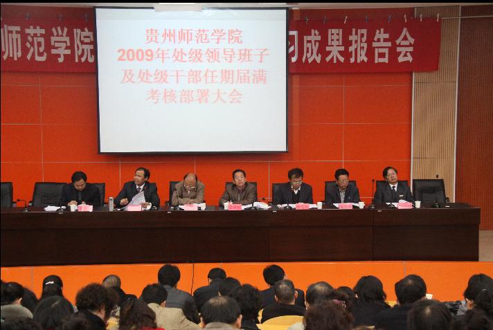 11月26日下午,我校召开了2009年处级领导班子及处级干部任期届满考核部署大会,全面部署处级领导班子及处级干部任期届满考核工作。出席大会的领导有:校党委书记霍健康、校长袁惠民,副校长汪羿,纪委书记王德敏,副校长万一平、张承鹄、石培新,会议由校长袁惠民主持。 会上,霍书记作了重要讲话。他说,2009年处级领导班子及处级干部任期届满考核,是进一步贯彻落实科学发展观,贯彻落实党的十七届四中全会和省委十届七次全会精神,有利于进一步加强我校干部队伍建设。按照学校改制后的发展需要,坚持以人为本、改革创新、优化组合、促进发展的原则,使全校处级领导班子和全体处级干部全面总结任期内的思想、工作、作风、实绩情况,实事求是地总结经验,查摆不足,创新思路,不断增强履行岗位职责和开拓创新能力,为学校的科学发展再上水平奠定坚实的干部队伍基础。考核工作涉及全校处级领导班子和全体处级干部的切身利益,希望大家务必认真学习、领会其考核精神。霍书记特别强调了考核纪律,他希望在学校营造“风清气正”的氛围,真正落实考核纪律的“九不准”,建设好中层干部队伍。他强调,在任期届满考核工作中,考核人员、考核对象及有关工作人员不准凭个人好恶反映情况;不准借考核之机谋取私利;不准泄露考核机密;不准故意夸大、缩小、隐瞒、歪曲事实;不准搞拉票等非组织活动;不准设置障碍、干扰或妨碍考核工作;不准弄虚作假、向考核组提供虚假信息;不准对反映其问题的人打击报复;不准影响正常的工作和教学秩序。 副院长万一平宣读了《贵州师范学院2009年处级领导班子及处级干部任期届满考核实施方案》,对考核指导思想、考核原则、考核对象、考核内容、考核程序、考核纪律等方面的内容进行了详细、全面地解读,并对本次处级干部考核内容:德、能、勤、绩、廉等方面的情况作了具体介绍。 全体教师、全校副科级以上干部参加会议。 (宣传部 / 学生记者 刘小溪)