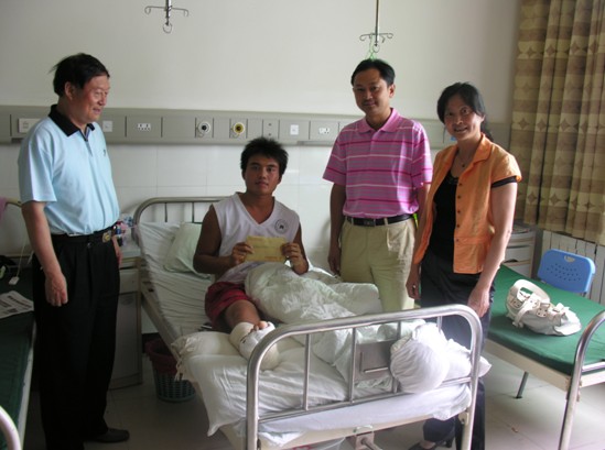 2009年6月22日11时,学院副院长石培新在数计系党总支书记赵刚、学生资助管理中心副主任侯晓薇、总务处医保科科长徐平等陪同下到乌当区人民医院看望了受重伤的学生张雄,并带去了学院的医疗慰问费5000元。石院长到医院后在认真地向医生询问了张雄的病情及术后的康复情况后,再三叮嘱张雄安心养病,要遵从医生的要求,积极配合治疗,争取早日康复,早日返校。张雄激动地说:“我一定不辜负学院对我的关心,病好后,一定努力学习,以优异的成绩回报母校。”之后石院长又与乌当区人民医院郭副院长和急诊科罗主任一起商谈关于给予张雄减免医疗费用等事宜。