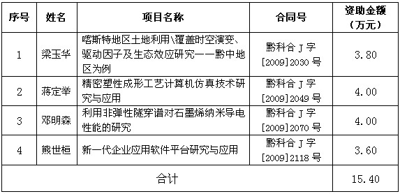 2009年度我院获省科学技术基金资助项目共四项,与去年相比有较大进步。(见下表)