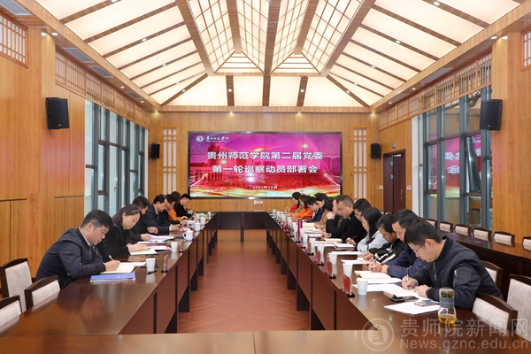 本网讯 贵州师范学院旗帜鲜明讲政治,坚决向党中央看齐,向总书记看齐,不折不扣贯彻中央、省委巡视工作方针和要求。10月19日,学校第二届党委第一轮巡察动员部署会在印山书院一楼会议室召开。校党委书记、校巡察工作领导小组组长石培新,校党委委员、纪委书记、校巡察工作领导小组常务副组长韩兵兵出席会议,会议由校党委委员、组织部部长、校巡察工作领导小组副组长杨昌顺主持。