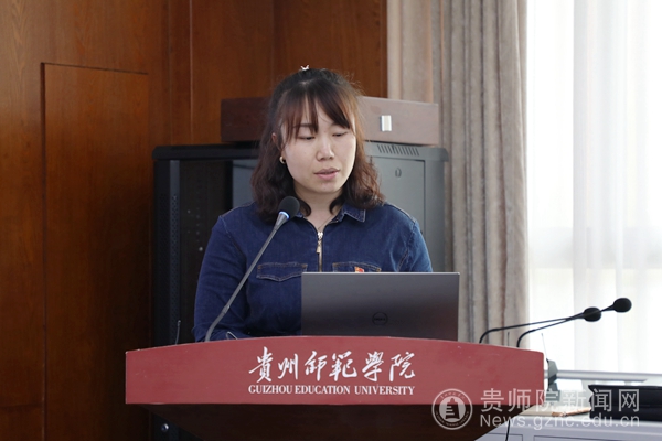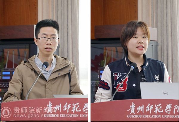 商学院党委检委员朱朝建交流发言(左)化材学院党总支纪检委员李艳莹作主题交流发言(右)
