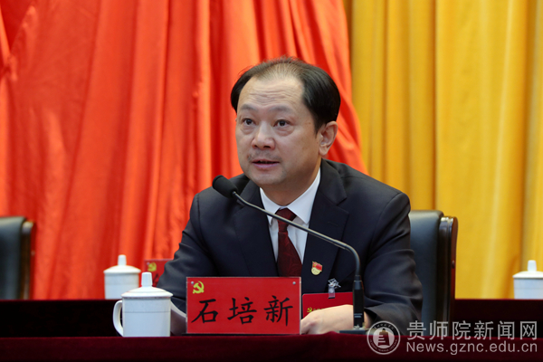 最后,石培新强调,当前学校处于发展的关键时期,挑战前所未有,机遇前所未有,只有大作为才有大发展。我们要抢抓贵州省“大扶贫、大数据、大生态”三大战略、特色教育强省、十二大特色产业、乡村振兴、新兴产业发展先机和“双一流”建设的重大发展机遇,聚焦人才培养主责主业,以发展为要务,以立德树人为根本,以申硕工作为抓手,以学科建设为龙头,以教学科研为主线,以改革创新为动力,扎根贵州大地办教育,把论文写在贵州大地上,乘势而上、顺势而为、加快发展。要善于思变、求变,敢于突破不合时宜的观念,敢于打破陈规陋习的束缚,大力破解制约发展的体制机制障碍,最大限度地让改革激发活力。要围绕“师”作文章,立足“贵”强服务,潜心钻研,苦干实干,多出成果,为贵州脱贫攻坚、生态文明建设和经济社会高质量发展贡献我校的智慧和力量。