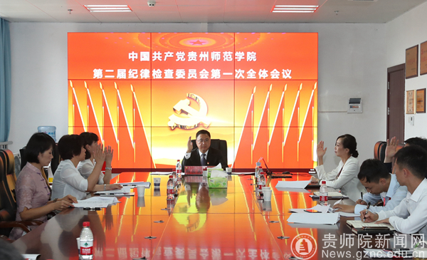 本网讯9月9日中午,中国共产党贵州师范学院第二届纪律检查委员会在信息楼网络中心会议室召开了第一次全体会议。韩兵兵同志受中国共产党贵州师范学院委员会第二次代表大会主席团委托主持会议。