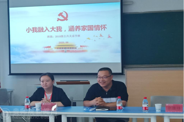 此次活动由王红都主持。首先,18级公共关系班班长陈禹彤介绍了班级这两年的发展情况以及特色亮点的系列活动。如:组建导师组、学习活动、实践活动、策划公关巡讲大会、参与营销策划大赛及数博会志愿者等相关活动,得到了余维祥的及各位老师的肯定和鼓舞。紧接着,余维祥向同学们分享了作为人大代表参加两代会的感想,感叹中国经济发展迅速、整体形式向好的一面发展。余维祥鼓励同学们,要勤学上进,在这个大好的时代加倍努力,为家乡为国家尽职尽责,发扬新时代青年的有为与担当,培养家国情怀。同学们备受鼓舞。