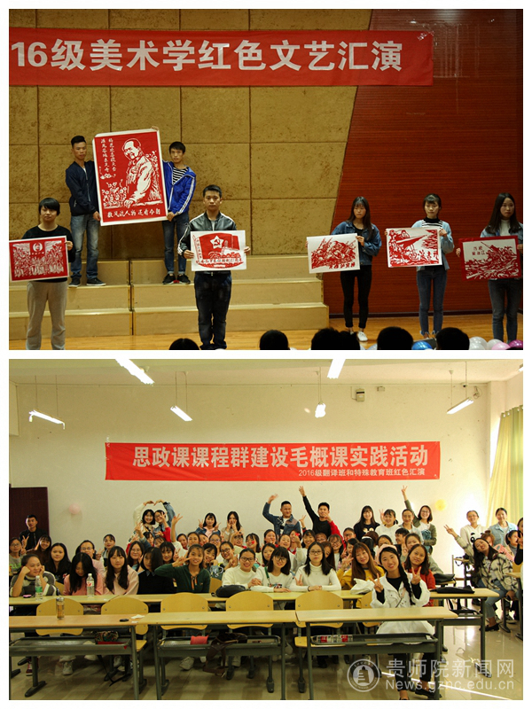 注重实践教学环节,促进由“知识教育”向“知行合一”的行为教育转变,是学校确保课程效果的关键。一年来,学校积极推行整体性实践教学,着力打通“课堂教学”“课外活动”这两大课堂,着力形成从思政课程到课程思政的圈层效应,解决好思政教学与专业教学“两张皮”问题。形成了文学与传媒学院“戏剧魅影”、旅游文化学院“文化创意展”等“一院一品”特色文化活动。2019年,学校通过组织开展“我和我的祖国”庆祝新中国成立70周年系列主题活动12项,引导学生通过实践教学活动增进将个人梦融入中国梦的使命自觉。让思政“小课堂”与社会“大课堂”同频共振,进一步凸显了思政课的实践育人功能。2019年,学校志愿者参与数博会、省互联网+成果展、支教活动等7000余人次。“动力青春助扶贫”三下乡团队被团中央评为全国优秀实践团队。在12月16日结束的2019贵州高校大数据与人工智能技能应用大赛总决赛上,我校荣获唯一一等奖,通过实践教学,我校思政课建设取得明显进展。同年我校数学与大数据学院发挥全国首批50个“三全育人”综合改革试点院系标杆作用,在“课程思政”中发力,开展“课程育人”行动,把思政内容贯穿于通识教育课程和专业教育课程各方面,结合专业课程特色,合理嵌入育人要素,以润物无声的形式将正确的价值观传导给学生,专业课程与思政课程同心同向育人格局基本形成。
