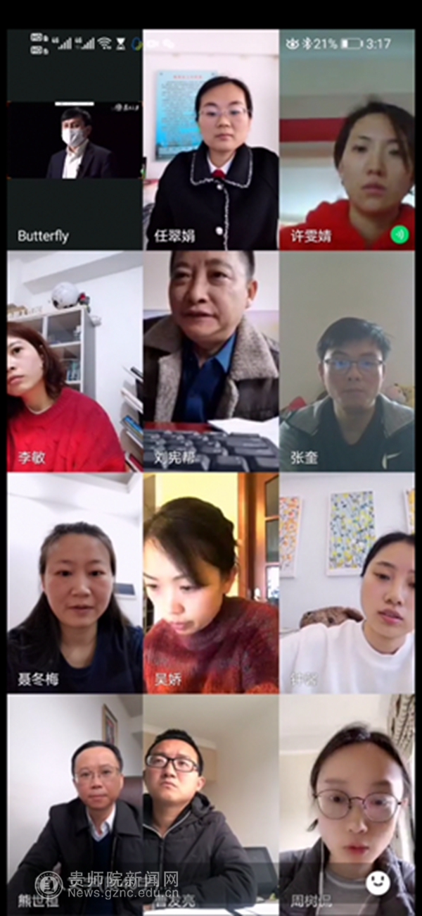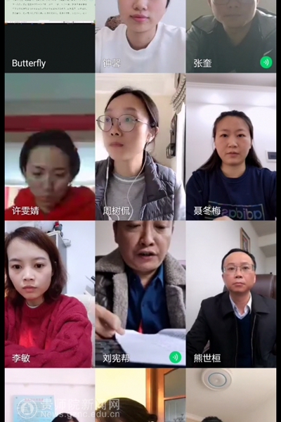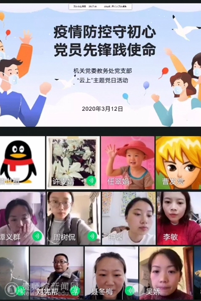 这是一次不同寻常的主题党日活动。这个以“锐意创新进取,乐于育人奉献”为宗旨、以“凝心聚力,共同前行”为战斗作风的优秀团队,一如既往地抱团迎战。第一环节,党员们隔着屏幕,激情涌动“学起来”。支部书记刘宪帮、副书记聂冬梅、组织委员钟馨、宣传委员李敏、纪检委员周树侃分别领学了:中共中央《关于加强党的领导、为打赢疫情防控阻击战提供坚强政治保证的通知》、中组部《关于坚决贯彻落实习近平总书记重要指示精神在打赢疫情防控阻击战中积极主动履职有效发挥作用的通知》、省委组织部《关于在新型冠状病毒感染的肺炎疫情防控工作中充分发挥基层党组织战斗堡垒作用和共产党员先锋模范作用的通知》、贵州师范学院《关于在疫情防控阻击战中充分发挥全校各级党组织战斗堡垒作用和广大共产党员先锋模范作用的通知》、贵州师范学院《关于进一步加强疫情防控工作期间基层党建工作的通知》。通过学习,党员们更加坚定决心,一致表示坚决拥护习近平总书记和党中央关于疫情形势的正确判断、科学决策和有力举措,要牢固树立“四个意识”,在疫情中要体现一名共产党员的责任担当。