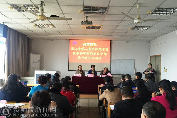 本网讯 12月4日上午,我校2016教学科研部门处级干部能力提升培训班开班典礼在浙江大学华家池校区举行。我校党委副书记令狐彩桃、浙江大学公共管理学院继续教育中心主任陈军及我校参培学员出席了开班典礼,开班典礼由校党委组织部部长伍燕主持。