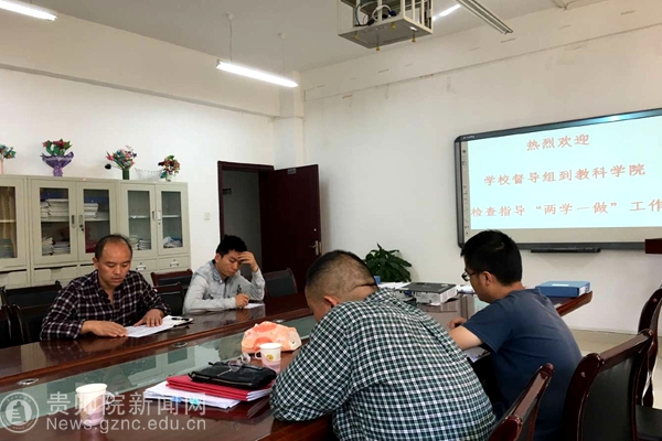 会议开始,彭祥友书记对校“两学一做”督导组到教育科学学院进行督导检查工作表示热烈欢迎;然后对我院“两学一做”开展情况进行详细汇报,对落实“三会一课”制度、开展“七个一”活动、重点内容学习、专项排查工作、学做结合脱贫攻坚等开展情况以及取得的成效进行汇报。重点汇报三个特色,在“两学一做”领导班子带头引领作用,专业送教上门服务,重视学生的综合素质提升。听完汇报后,督导组一行按照《贵州师范学院“两学一做”学习教育督导重点工作任务》对材料逐一检查。