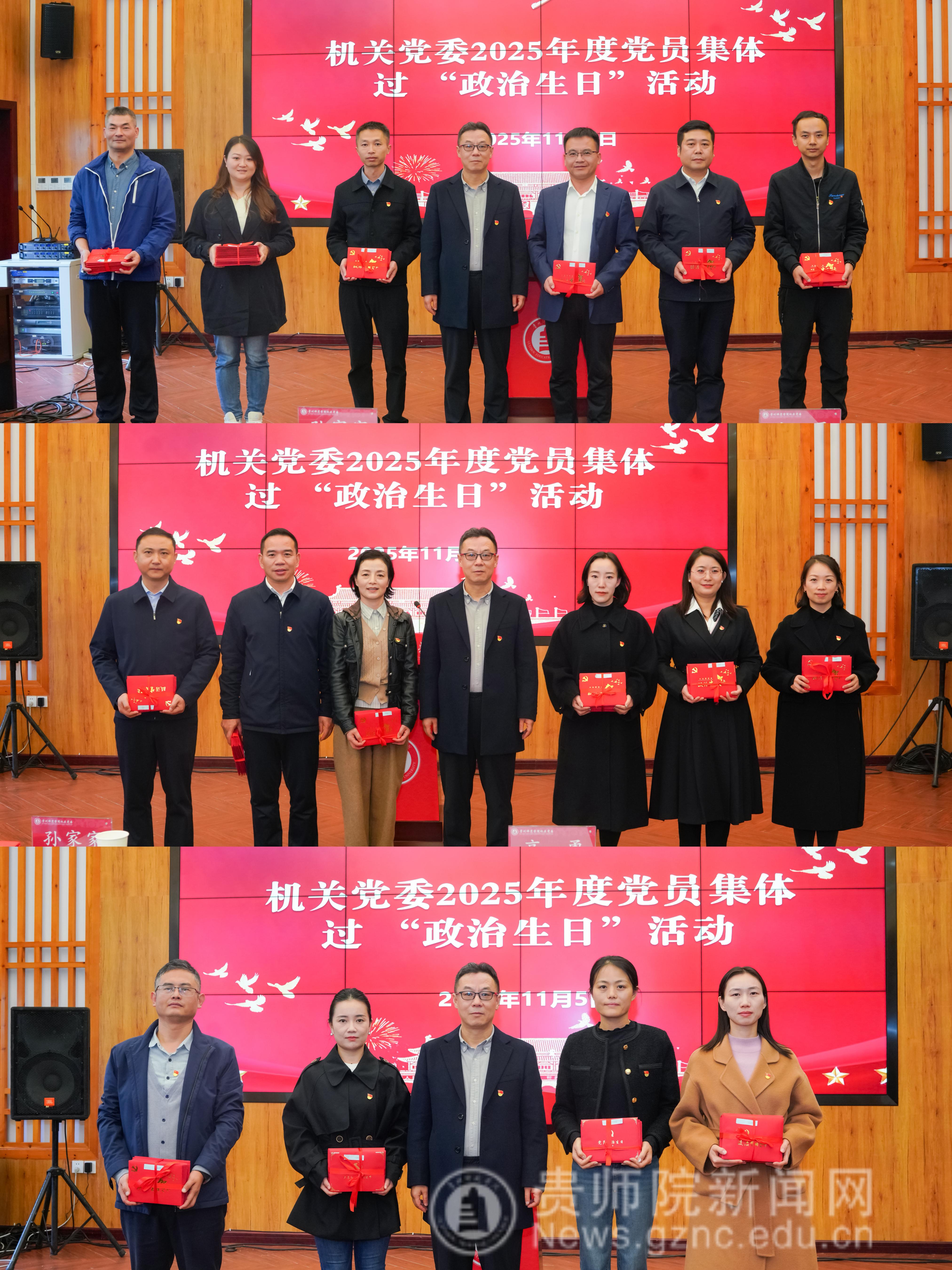 本网讯 为深入强化机关党员政治身份认同,筑牢初心使命根基,激活党组织凝聚力与战斗力,11月5日,机关党委以“追忆初心葆本色·砥砺奋进担使命”为主题,开展党员集体过“政治生日”活动。校党委副书记高勇出席活动,校党委常委、组织部部长、党政办公室主任孙家家,机关党委委员,各党支部书记及各党支部党员代表参加活动。活动由机关党委书记张瑶主持。